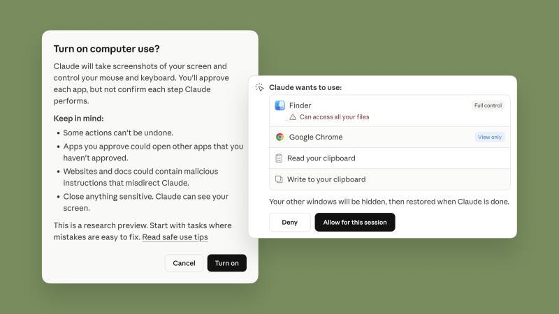Anthropic今日宣布,其Claude Code和Claude Cowork工具将进行更新,新增功能使这些AI工具能够使用您的电脑来完成各类任务。此次更新使得AI能够打开文件、使用浏览器以及运行开发工具。