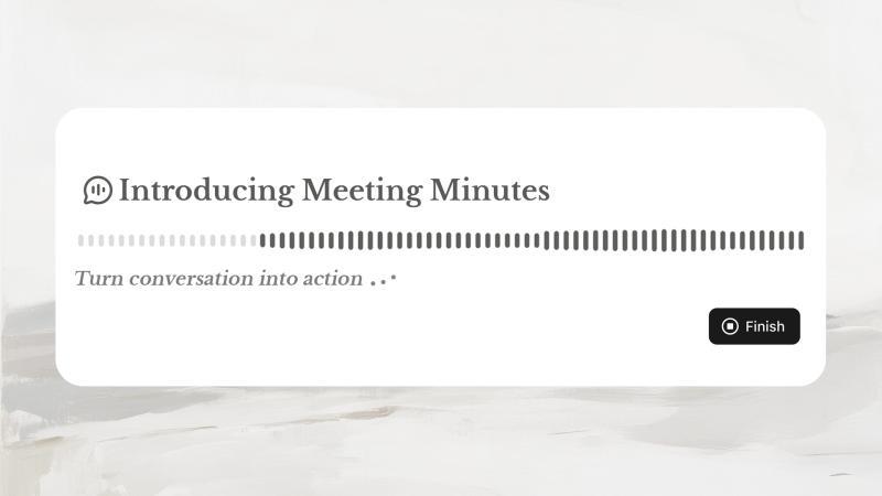 今天,我们推出了“会议纪要”功能,它能将对话转化为行动。该功能将你的实时讨论整理成结构化笔记,成为立即执行的跳板。