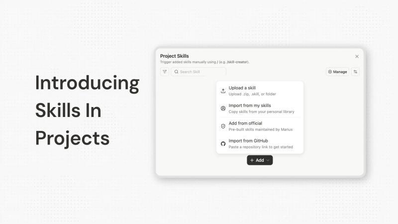 项目技能从今天起对所有Manus用户开放。